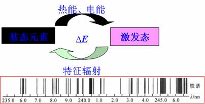 由于不同元素的原子結構不同,當被激發后發射光譜線的波長不盡相同,即每種元素都有其特征的波長,故根據這些元素的特征光譜就可以準確無誤的鑒別元素的存在(定性分析),而這些光譜線的強度又與試樣中該元素的含量有關,因此又可利用這些譜線的強度來測定元素的含量(定量分析)。